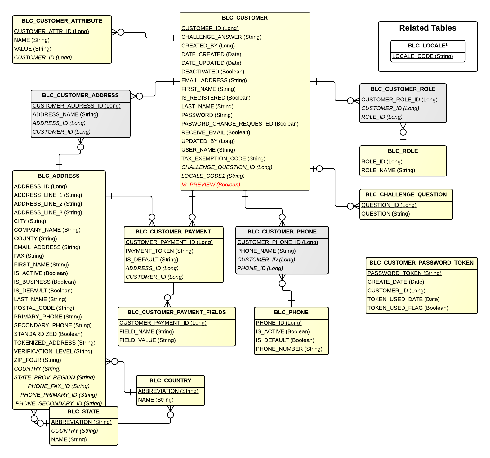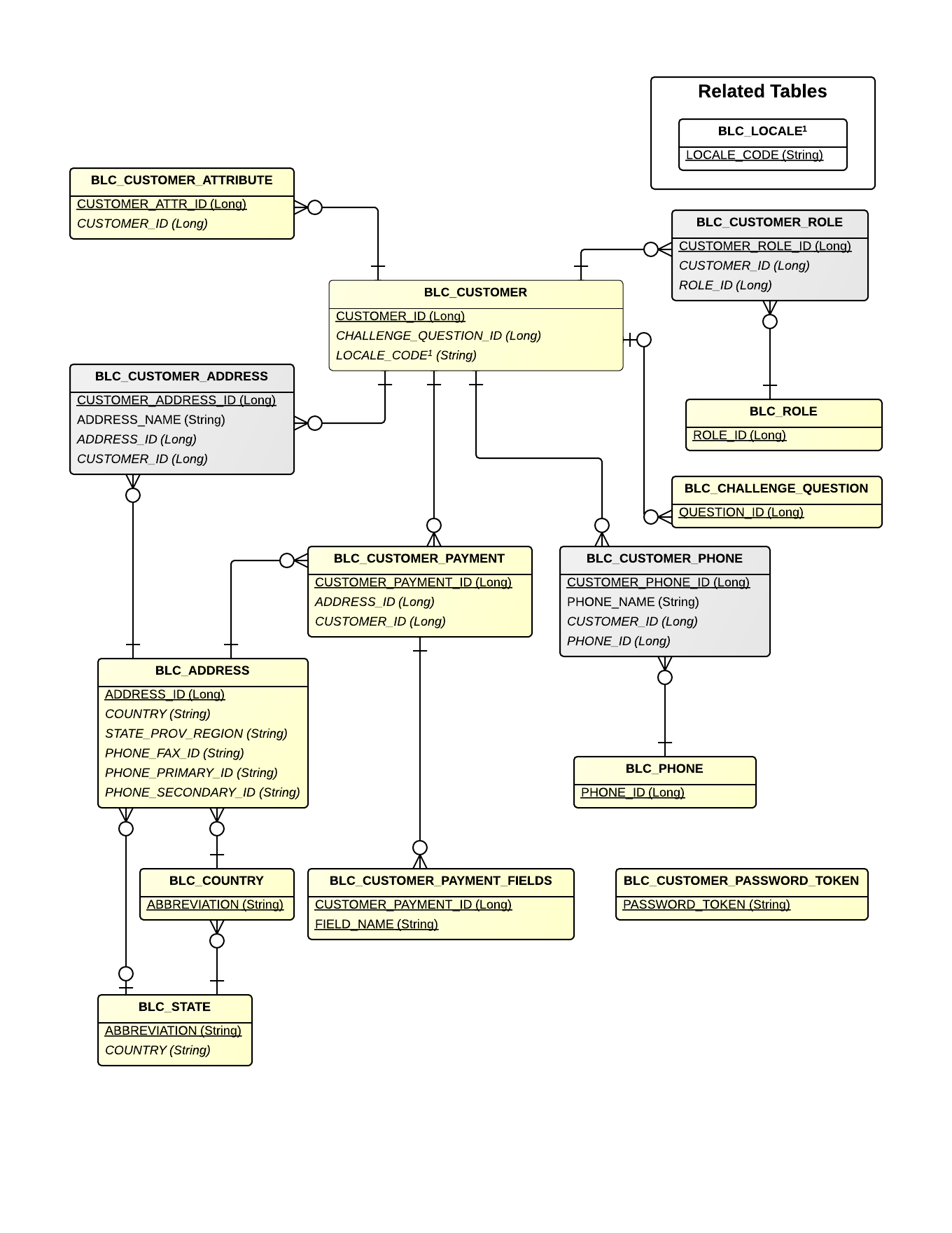 | BLC_CUSTOMER_ADDRESS | CustomerAddress | Associates a customer to an address |