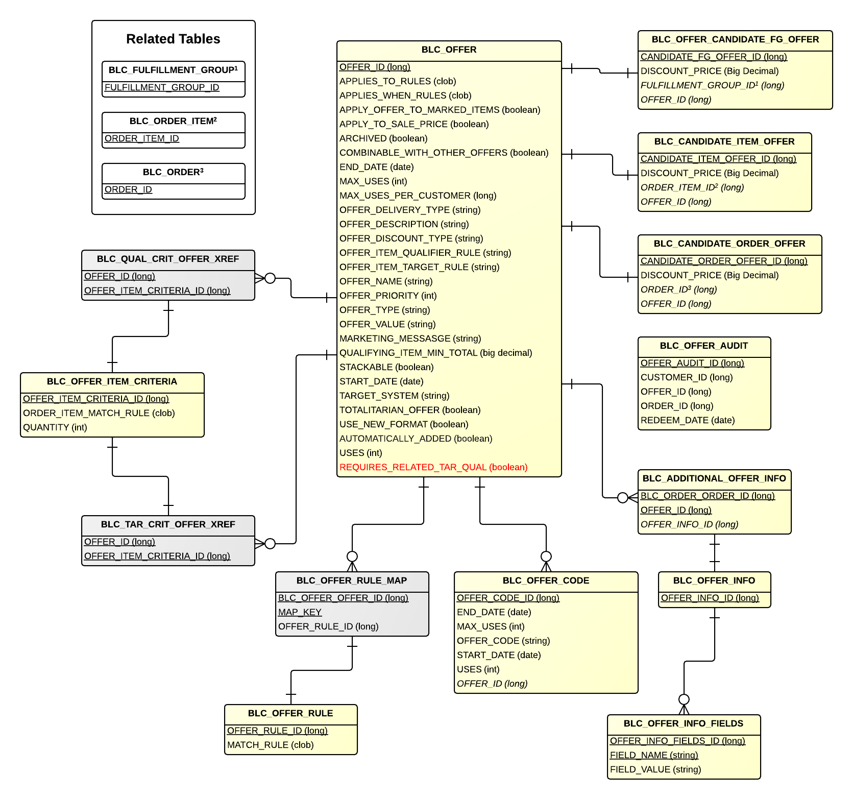| BLC_TAR_CRIT_OFFER_XREF | - | Cross reference table that points to an Offer target item criteria. |